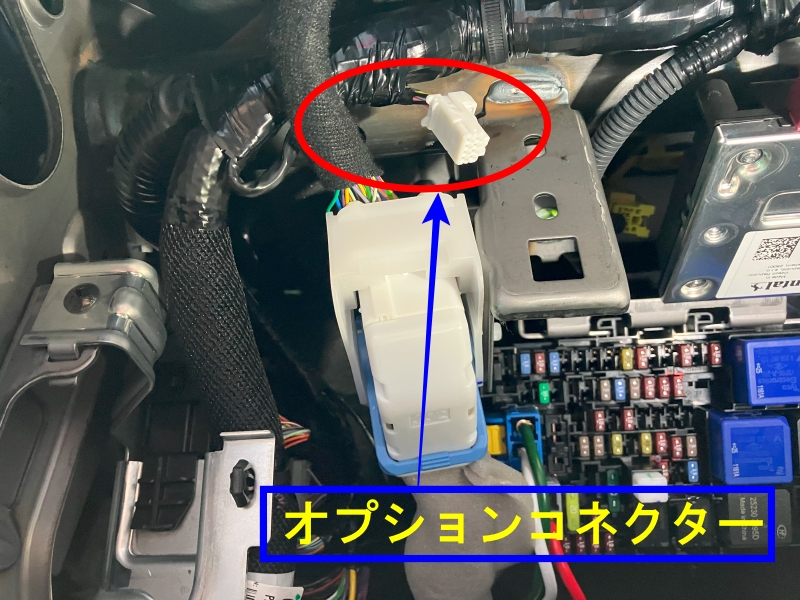 グローブボックスを外すとオプションコネクターが見えます。