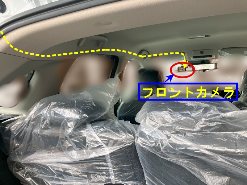 フロントカメラはフロントガラス上部の助手席側に取り付けます。