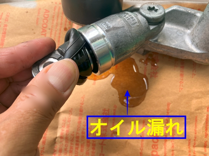 オイルが抜けたことでダンパー機能が低下し、ベルトの張力が弱くなっていたようです。